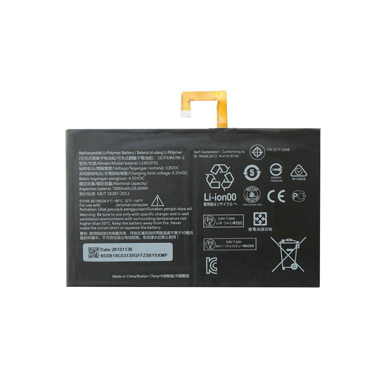 باتری تبلت مدل L14D2P31 ظرفیت 7000 میلی آمپر ساعت مناسب برای تبلت لنوو Tab 2 A10