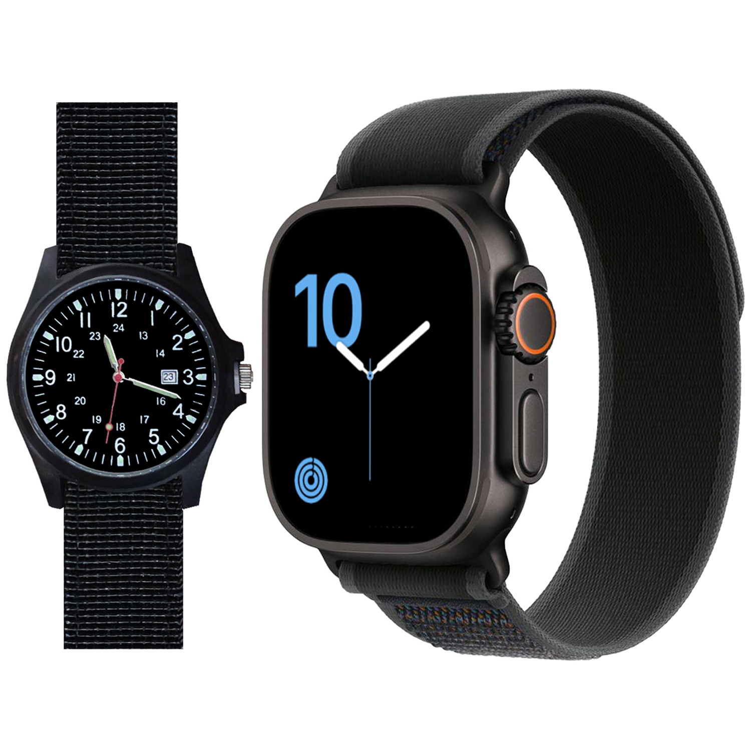 ساعت هوشمند 2.02 اینچی ویکتوری مدل HX9 ULTRA 2 با بند پارچه ای به همراه ساعت مچی