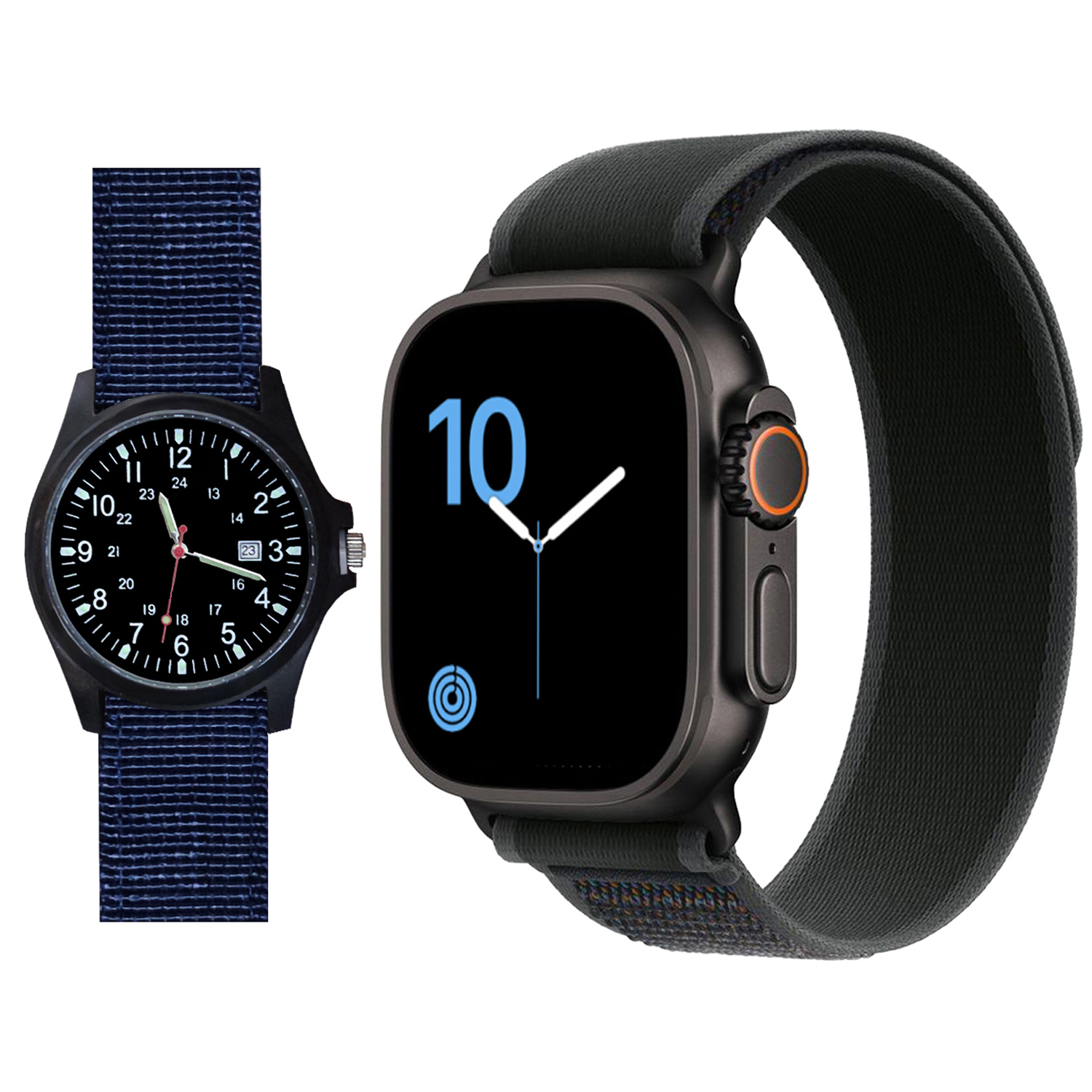 ساعت هوشمند 2.02 اینچی ویکتوری مدل WATCH 9 ULTRA 2 با بند پارچه ای به همراه ساعت مچی
